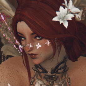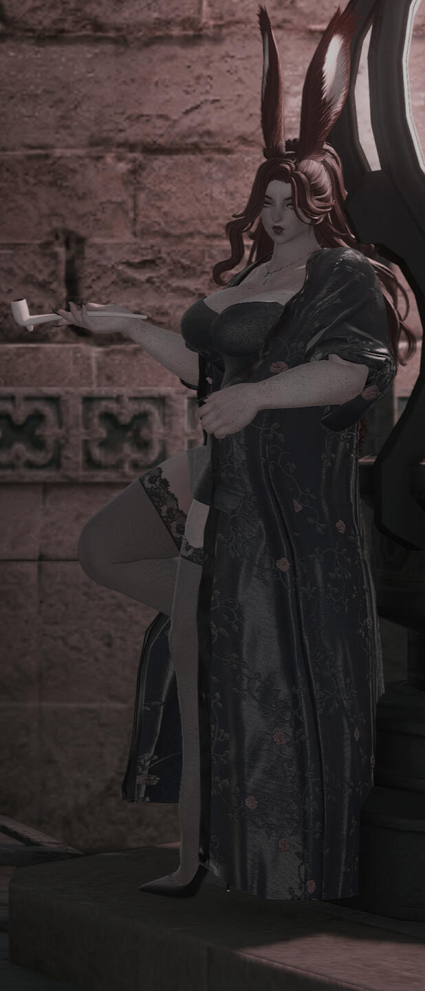 Naid Carville was born to a Rava mother and a Veena father - her mother was an exile from Golmorre, and her father was a runaway from a longstanding family of gleaners. Both met due to an underlying wanderlust that never faded, even with the struggles of parenthood. Naid effectively grew up in a caravan and, barring that, spent her nights sleeping at inns. Her parents worked as stagehands, with her mother specializing as an occasional understudy and seamstress, and her father using his sparse carpentry skills.Her father's background as a gleaner made him relatively well-educated, and Naid learned her math, reading, and writing from him. Her mother had tried to teach her magic at a young age, having been an accomplished mage back in Golmorre, but nothing quite stuck before her mother gave up those efforts.Neither bothered to teach Naid to cook which has become everyone's problem. She's trying to learn but please accept any food she gives you with GREAT CAUTION.She lost them around her sixteenth summer when an accident ran their caravan off the road. While she survived the accident, her parents, the caravan, and the animals pulling it did not.Naid spent the last of their coin cremating her parents, only earning a little more off the passable meat of their carriage does, the salvageable lumber, and what items she had no room to carry with her. In an experience that embittered her, the city-states had no room for her, and if she had any other family left, she had no way to reach them.If anyone were to ask, she started working as a prostitute as soon as it was legal to, filling the time between with unsavory jobs that others might not take on.Between her parents' death and the fall of Dalamud, Naid was widowed twice. Her first husband was an Ishgardian noble who was trying to make an heir - an effort that was complicated by his disinterest in women, his boyfriend's inability to bear children, his family's decimated status, and an undetected case of aetherspurn. The aetherspurn ended up killing him, and she moved on without her best friend. This marriage started when she was 19 and lasted one year, but she survived.While Naid received no inheritance or monetary compensation for the marriage, the family allowed Naid to take a chocobo. Naturally, she picked one that was half-destrier, and her rearing lead said bird, Eala, to be a menace to society. Eala travels with Naid to this day, but she's getting up in years.Her second husband was a blind Hrothgar she'd met on the outskirts in Yanxia, after she was stranded there when a business arrangement turned out to be something else entirely. She married him when she was 22, and it lasted three years before he was killed. In the ensuing grief, she blazed a building to the ground in Kugane. This resulted in 3rd and 4th degree burns along the left side of her body, but she survived. She was barred from Kugane except in very specific circumstances and sent back to Limsa Lominsa.And then the Calamity happened. The ship wrecked on the Isles of Umbra, along with many other ships, but she survived, though with a belief that she had been enthralled. She has continued to work as a prostitute since then, never staying in one place for too long.... At least, that's what she's willing to share, at any rate.
